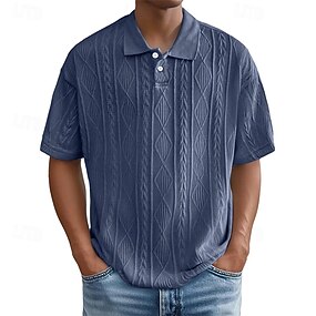 Herre Poloskjorter Med Tekstur Avslappet Gate Knaphul Kortermet Grunnleggende Moderne عادي Knapper Pustende Vår sommer Normal Blå Svart Kakifarget Poloskjorter