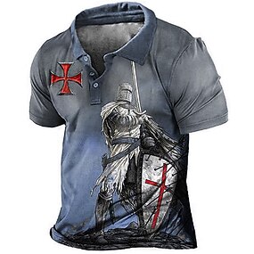 Herre Tempelridderne Poloskjorter Golf skjorte Kortermet Poloskjorter Skjorter med krage Årgang Fritid Ferieklær Festivalklær Festantrekk Knapper 3D-utskrift Svart Rød Navyblå