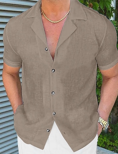 Herre Skjorte Linskjorte Uformell skjorte Skjorte med knapper Bomullsskjorte عادي Feriereise Gate Hvit Navyblå Blå Brun Kortermet Bestefar Sommer Klær Lomme