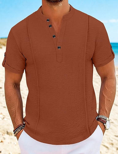 Herre Skjorte Uformell skjorte Skjorte med knapper عادي Avslappet Strand Hvit Navyblå Brun Militærgrønn Kortermet Henley Sommer Klær Blondér