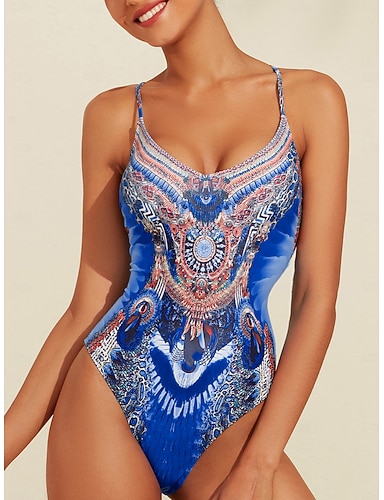 Dame Badetøy Ett stykke Badedrakt Avtagbar pad Rynket utringing Boho Paisley Damask Gul Torget Badedrakter Trykt mønster ny Ferie Strand Klær Strandstil
