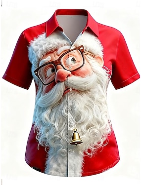 Jul Dame Skjorte Grafisk julenissen Årgang Tropisk Daglig Ermeløs Kortermet Skjortekrage Vanlige topper Daglig Rød Blå Lilla Grønn Grå Sommer Vår Vinter