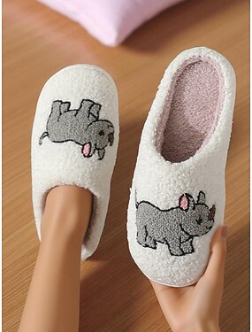 Dameplysj-tøfler med tegneseriemotiv og brodert bjørn – myke og koselige innesko til soverom og vinterbruk hjemme