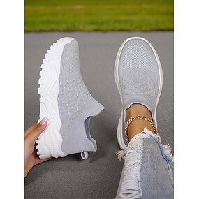 hvite strikkede slip-on joggesko for kvinner – moderne og komfortabel stil for aktive kvinner i utendørs turer, treningsøkter og uformelle byutforskninger
