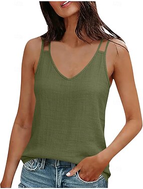 Dame Sommertopper Imitert bomullslin Snorer Helfarge Elegant Tropisk Daglig Ermeløs Ermeløs V-hals Vanlige topper Daglig Arbeid Ferie Gressgrønn Svart Hvit Lysegrønn Rød Sommer Vår Høst