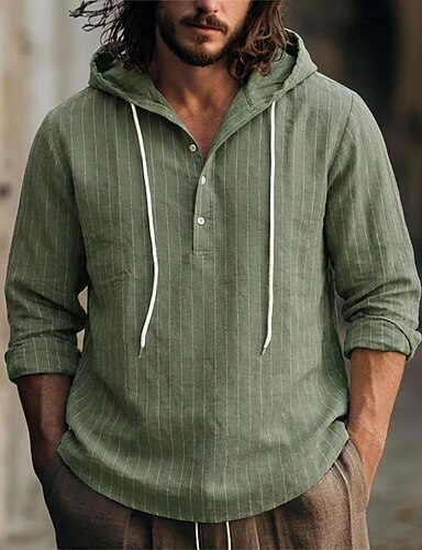 Herre Skjorte linskjorte Calico skjorte Skjorte med hette Stribe Avslappet Daglig Hvit Blå Brun Grønn Langermet Med hette Vår sommer Klær