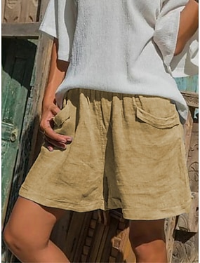 Dame Imitert bomullslin Shorts Bukser Sommershorts Gatemote Fritid Kort Naturlig عادي Lomme Elastisk snordesign comfy Bekvem utendørs Ut på byen Aprikos Hyasint Svart Hvit Sommer Normal