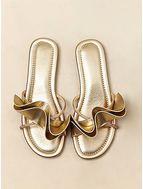 Gullfargede, flate bryllupssandaler til dame – komfortable slip-on-sko til brudesko til hotellseremonier om morgenen