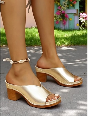 Dame Daglig Stiletthæl Åpen Tå Mote Fuskelær Tøfler Gull