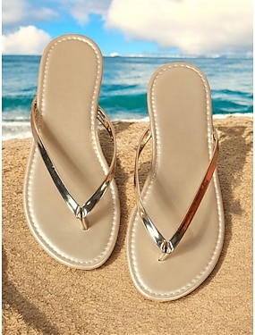 metalliske flip-flops med reim – minimalistiske strandsandaler med polstret såle, uformell sommerstil for ferie, basseng og hverdagsbruk