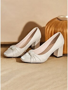 kvinners elegante perlepyntede blokkhælpumper – perfekt for bryllup, formelle arrangementer og kveldsklær