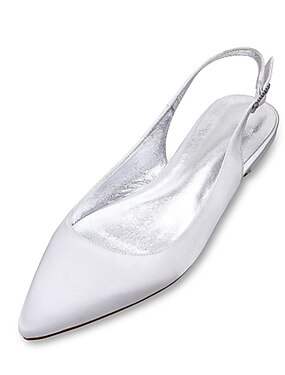Dame bryllup sko Store størrelser Brudesko Flat hæl Slingback-hæl Spisstå minimalisme Sateng Spenne Hvit Krystall Sølv
