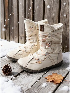 Røde vinterstøvler i skinn for dame med forbedret grep – allroundstøvler med mellomhøyde legg for utendørseventyr, fotturer og vintersport