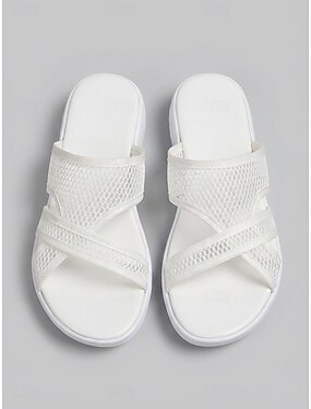hvite nettingsko til dame – pustende, lette, flate sandaler med kryssreim, uformelle sommersko for reiser, hage og hverdagsbruk