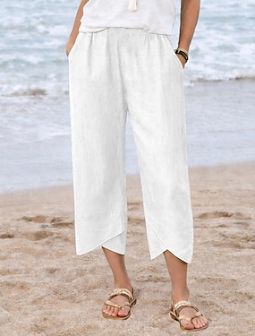 Dame Linbukser i bomull Sommerbukser Ferie Grunnleggende Ankel-lengde Medium Midje Komfort Uelastisk Avslappet Daglig Gateklær Elv Blå Marine Hvit Rosa Sommer Vår