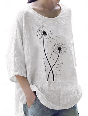 Dame T skjorte Imitert bomullslin Trykt mønster Grafisk løvetann Mote Stilfull Klassisk Kortermet V-hals Vanlige topper Daglig Ut på byen Helg Hvit Gul Blæk Blå Grå Lyseblå Sommer Vår