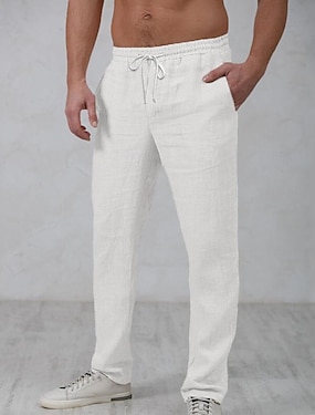 Herre Linbukser Bukser Sommerbukser Posete bukser Lomme Elastisk midje Rett ben عادي Komfort Pustende Full lengde Avslappet Daglig Ferie Mote Klassisk Stil Svart Hvit