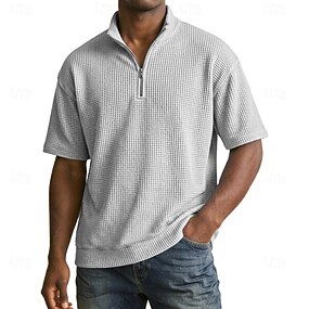 Herre Vaffel poloskjorter Poloskjorter Avslappet Daglig Quarter Zip Kortermet Mote Grunnleggende عادي Glidelås Lettvekt Sommer Vår Normal Vin Svart Hvit Navyblå Himmelblå Lilla Vaffel poloskjorter