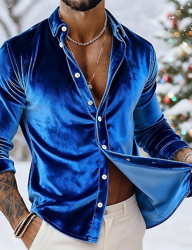 Herre Skjorte Vin Blå Lilla Grønn Langermet Helfarge عادي Skjortekrage Karneval Jul Knapper Klær Jul Elegant Varm Aktiv