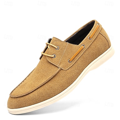 Beige båtsko i semsket skinn med snøring til herre – komfortable fritidssko for helg, ferie og daglig bruk