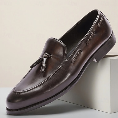 Herreloafers med kvast i 100 % premiumskinn, polert finish, elegante pensko, ideelle for bryllup, kontor og formelle anledninger