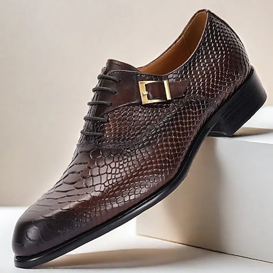 mørkebrune oxford-skinnsko med krokodillemønster for menn med spenne – elegante ballkjolesko for formelle anledninger