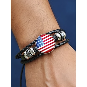menns legering &Armbånd i lærblanding, amerikansk flaggdesign, justerbar størrelse, patriotisk stil, ideell for amerikanske 50-årsjubileum, uavhengighetsdag, hverdagslig uformell &sportsklær
