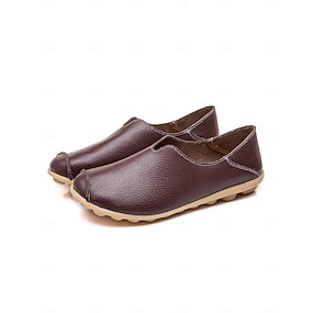 Damesko med kaffefarget, bred tå – myke slip-on-sko med sklisikker såle for heldagsturer, reiser og fritidsbruk.