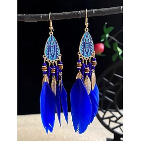 bohemiske fjærøreringer med fargerike perler, etnisk stil for kvinner – perfekt for sommerfestivaler, uformelle utflukter og ferieklær