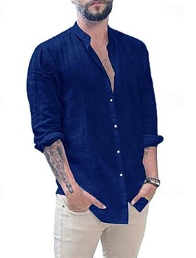 Herre Skjorte Linskjorte Sommerskjorte Strandskjorte Skjorte i bomullslin عادي Feriereise Ferie Svart Hvit Lysegrønn Mørk Marineblå Langermet Opprett krage Vår & Vinter Klær Knapp ned