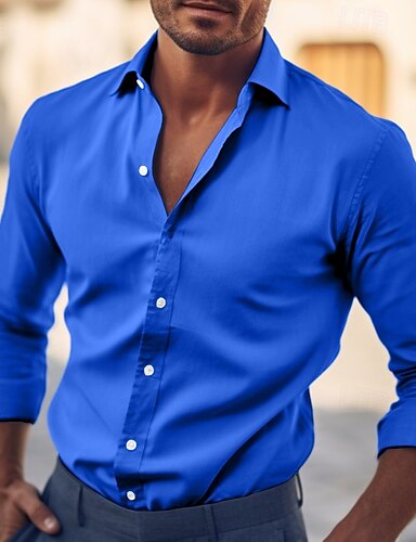 Herre Skjorte Dresskjorter عادي Kontor og karriere Bryllupsfest Lyseblå Svart Hvit Rød Langermet Knaphul Sommer Klær