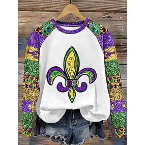Karneval Kvinne Pullover Sweatshirt Grafisk Motebekledning Uformell Langermet Crew Neck Vanlige Topper Gate Dagbruk Trykk Lilla Grønn Vår Høst Vinter