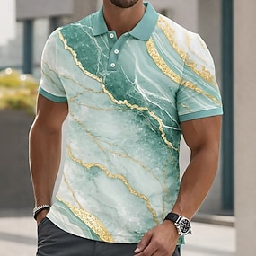 Herre Marmor Poloskjorter Kortermet Poloskjorter Skjorter med krage Fritid Gateklær treningsklær Dagligdagstøy 3D-utskrift Knapper Pustende netting Vår sommer Blå Brun Grønn
