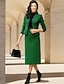 Linjeform Te-lengde Festkjole Cocktail Kjole Langermet Knaphul Elegant Årgang Formell Ull Kjole til brudens mor Jakke kjoler med Knapper