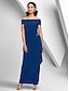 Linjeform Knelengde Festkjole Cocktail Kjole Bodycon kjole 3/4 ermer Løse skuldre Elegant Bryllupsgjest Sateng Kjole til brudens mor med Ruchiing