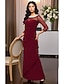 Linjeform Knelengde Festkjole Cocktail Kjole Bodycon kjole 3/4 ermer V-hals Elegant Blomster Formell Bryllupsgjest Sateng Kjole til brudens mor med Bølgemønster Shouder blomst
