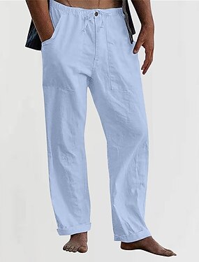 Herre Linbukser Bukser Sommerbukser Posete bukser Strandbukser Snorer Sideknapp Rett ben عادي Komfort Pustende Full lengde Avslappet Daglig Ferie Mote Klassisk Stil Svart Hvit Uelastisk