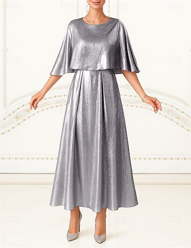 A-linje Ankellengde Festkjole Cocktail Kjole Halvlange ermer Crew-hals Elegant Årgang Formell Polyester Kjole til brudens mor med Ensfarget