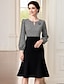 A-linje Havfrue Knelengde Cocktail Kjole Langermet Crew-hals Elegant Årgang Fest Bryllupsgjest Polyester Kjole til brudens mor med Paljett Fargeblokk