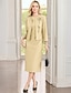 To Deler Mor til bruden Kjole Bryllupsgjest Kirke Elegant Juvel Hals Ankellengde Stretch Satin 3/4 Lengde Erme Kort Jakke Skjørt med Sløyfe(r) Racedag Kjole