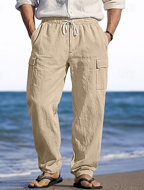Herre Linbukser Cargo joggere Bukser Sommerbukser Strandbukser Snorer Elastisk midje Multi lomme عادي Komfort Pustende Avslappet Daglig Ferie Mote Klassisk Stil Svart Hvit