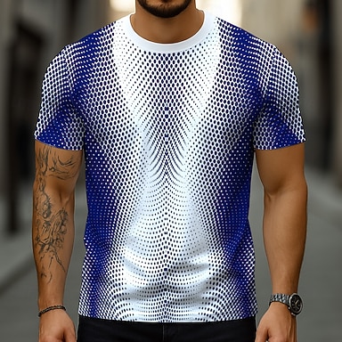 Herre Geometrisk 3D Print 3D T skjorte Kortermet T skjorte 3D-utskrift Crew-hals Skjorte overdrevet Designer Fest Gate Avslappet Rød Blå Grønn Sommer Vår Alle årstider Klær S M L XL XXL XXXL