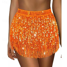 Samba Dancewear Paillett Skjørt Glitrende Skjørt Magedans Skjørt Paillett Frynse Skjørt Franje Hoftesjal Kvinne Oppvisningskostyme