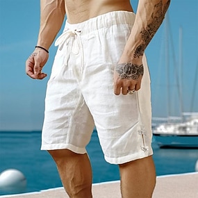 Herre Shorts Lin Shorts Sommershorts Strandshorts Snorer Lomme Elastisk midje عادي Komfort Pustende Kort Avslappet Daglig Ferie Mote Klassisk Stil Hvit Militærgrønn