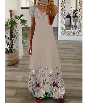 kvinners maxi lang kjole fritidskjole sommerkjole print kjole mote streetwear utendørs ferie daglig print kortermet v-hals kjole normal passform svart hvit rosa sommer vår s m l xl xxl