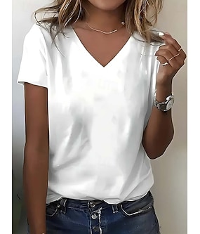 Dame T skjorte Mote Grunnleggende Fritid Kortermet V-hals Vanlige topper Daglig Svart Hvit Grå Vår, Høst, Vinter, Sommer