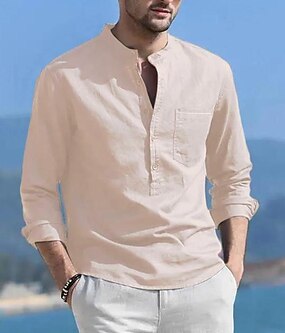 Herre Linskjorte Popover skjorte Uformell skjorte Skjorte med knapper عادي Feriereise Gate Hvit Gul Rosa Aprikos Kortermet Båndkrage Vår sommer Klær Lomme
