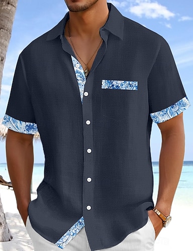 herreskjorte i linskjorte sommerskjorte strandskjorte sommer hawaiiskjorte ensfarget fritid daglig blå svart hvit lysegrønn kortermet krage vår &sommer sommerklær lappeteppe