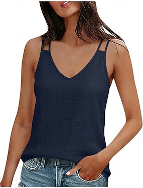 Dame Sommertopper Imitert bomullslin Snorer Helfarge Elegant Tropisk Daglig Ermeløs Ermeløs V-hals Vanlige topper Daglig Arbeid Ferie Gressgrønn Svart Hvit Lysegrønn Rød Sommer Vår Høst