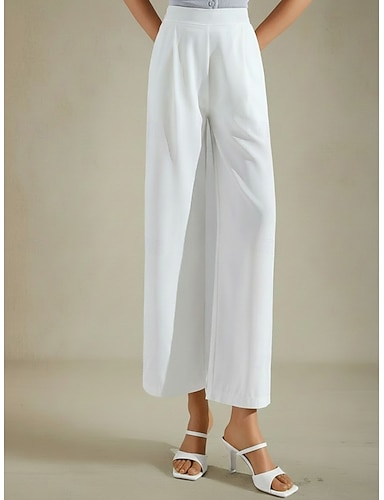 Dame Chiffon Bred Bukseben kinesisk Ferie Gatemote Grunnleggende Full lengde Ankel-lengde Middels midje Helfarge عادي Elastisk midje Komfort Pustende Uelastisk Daglig utendørs Gateklær Svart Hvit